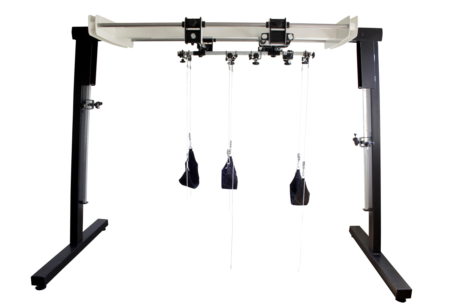 Ve standardním vybavení LEVITAS jsou: mobilní rám pro cvičení v závěsu, sada lan s příslušenstvím, závěsy, popruhy, manžety a závaží.